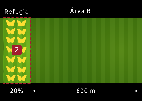 - Alrededor del cultivo con Tecnologías Bayer, siempre que el refugio tenga al menos 10 metros de ancho.